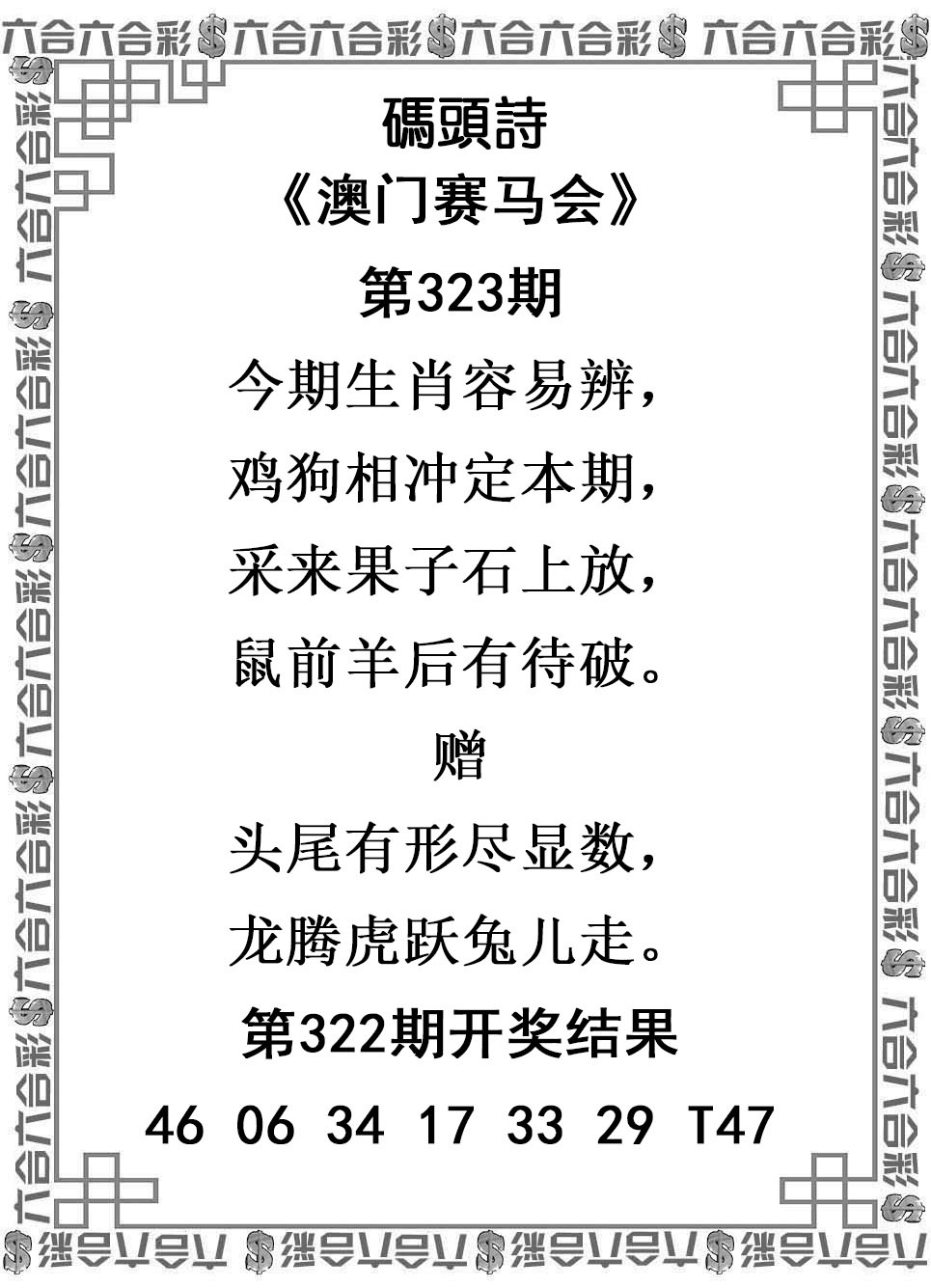 323期澳彩码头诗