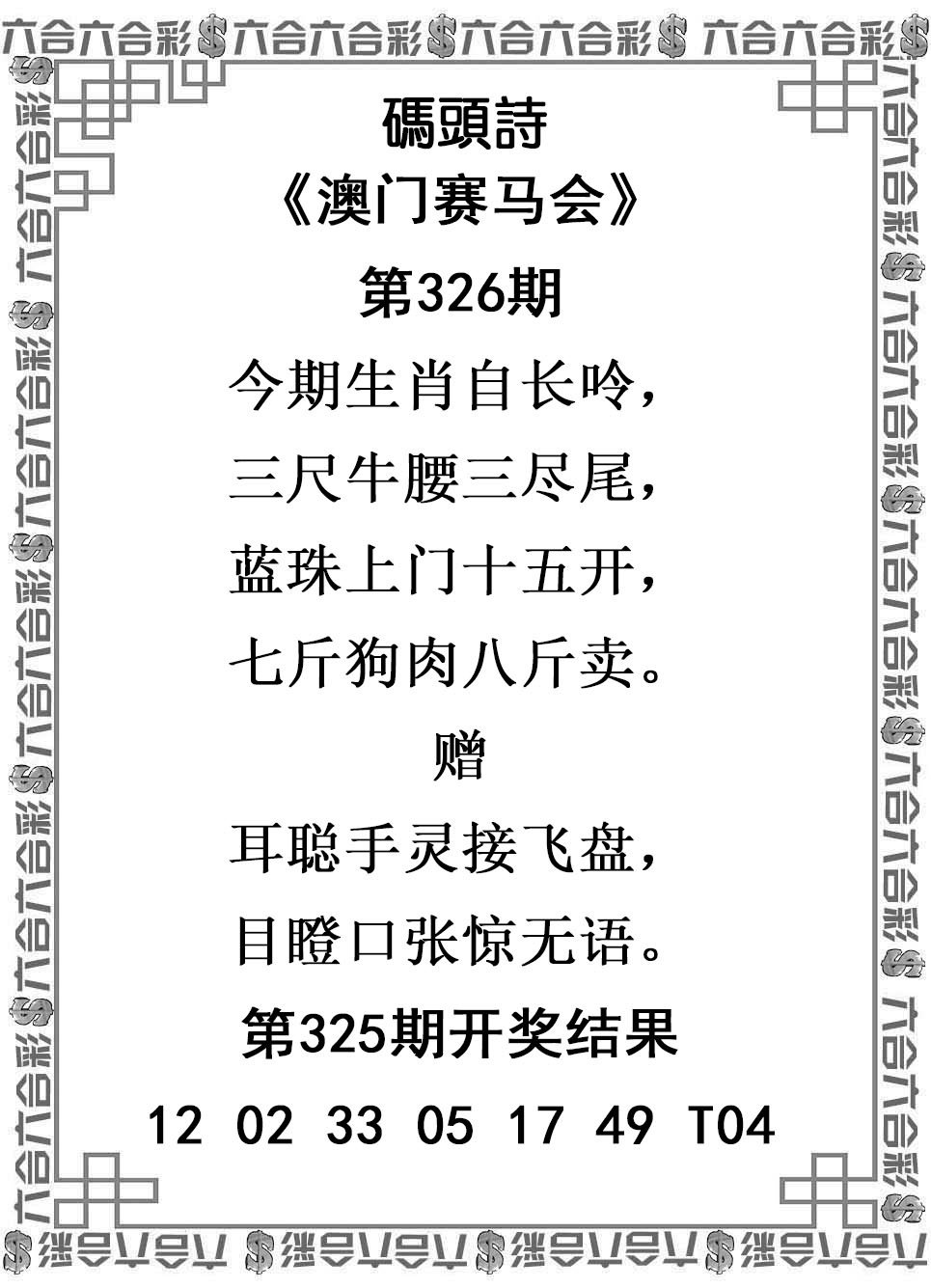 326期澳彩码头诗解:今期生肖自长呤,三尺牛腰三尽尾,蓝珠上门十五开,七斤狗肉八斤卖。综合特肖:狗虎蛇龙牛羊综合主肖:狗虎蛇龙